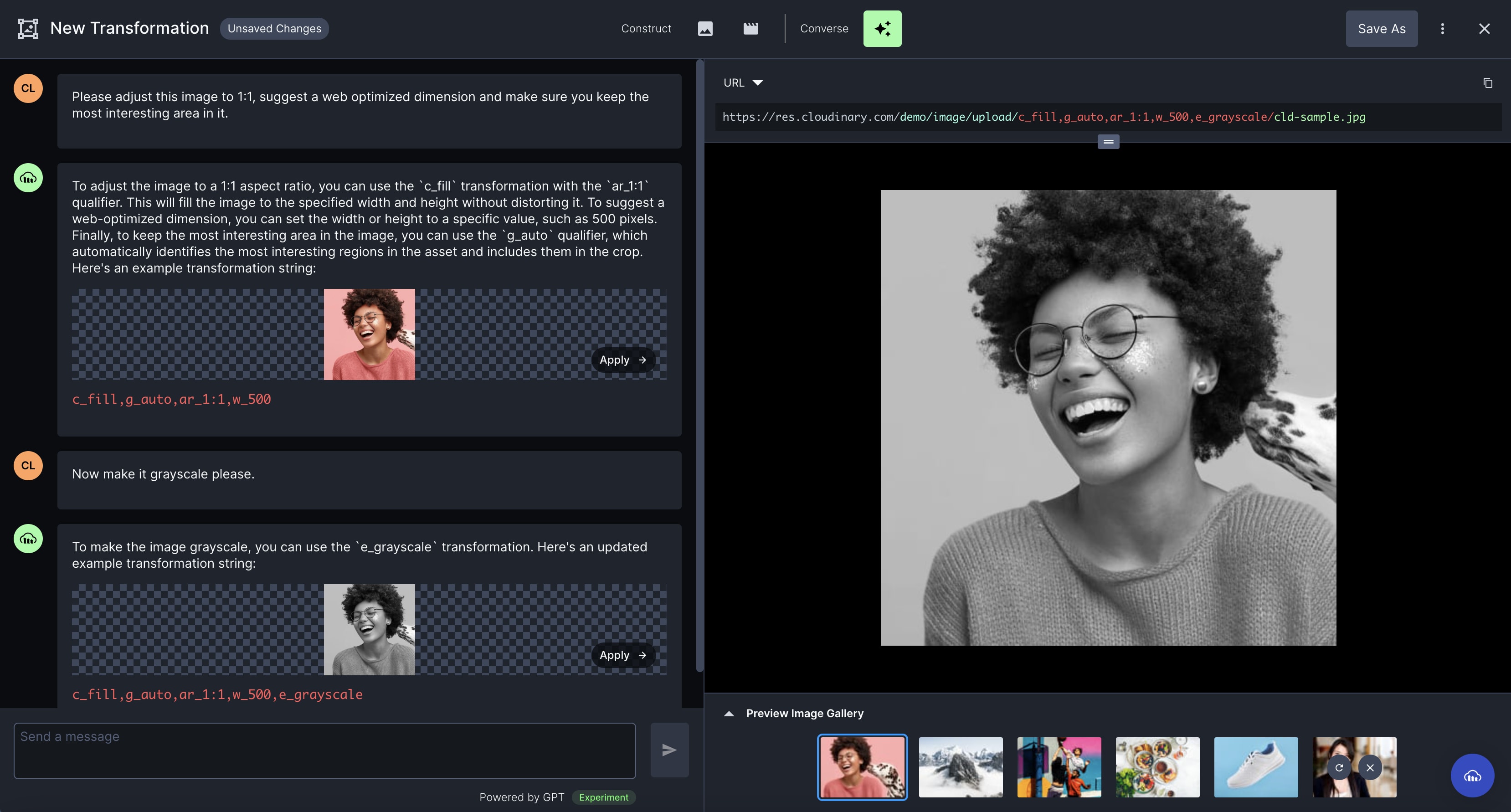 The following video provides a quick demonstration of how dynamic transformation URLs work with both images and videos.