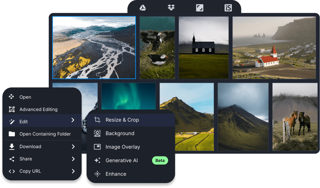 The only platform for managing, editing, and delivering images and video on a massive scale.