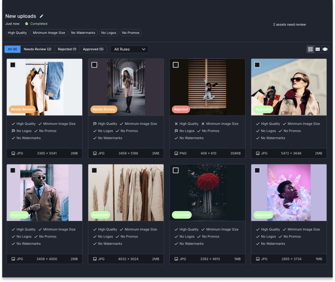 Automate quality improvement, normalization, brand alignment, and compliance for user- or partner-supplied images and videos.